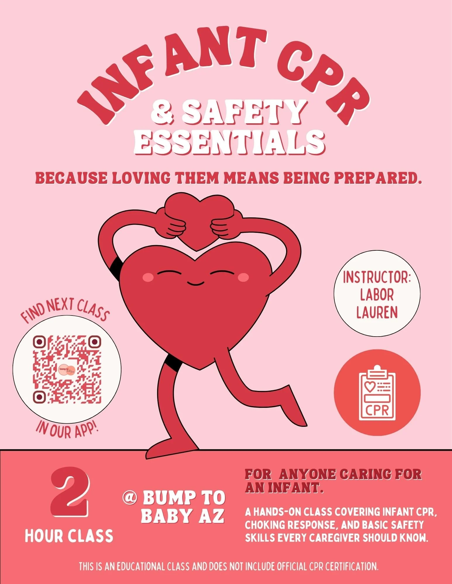 If you’re looking for a class that prioritizes confidence over fear, our infant safety class at Bump To Baby AZ is designed for that.